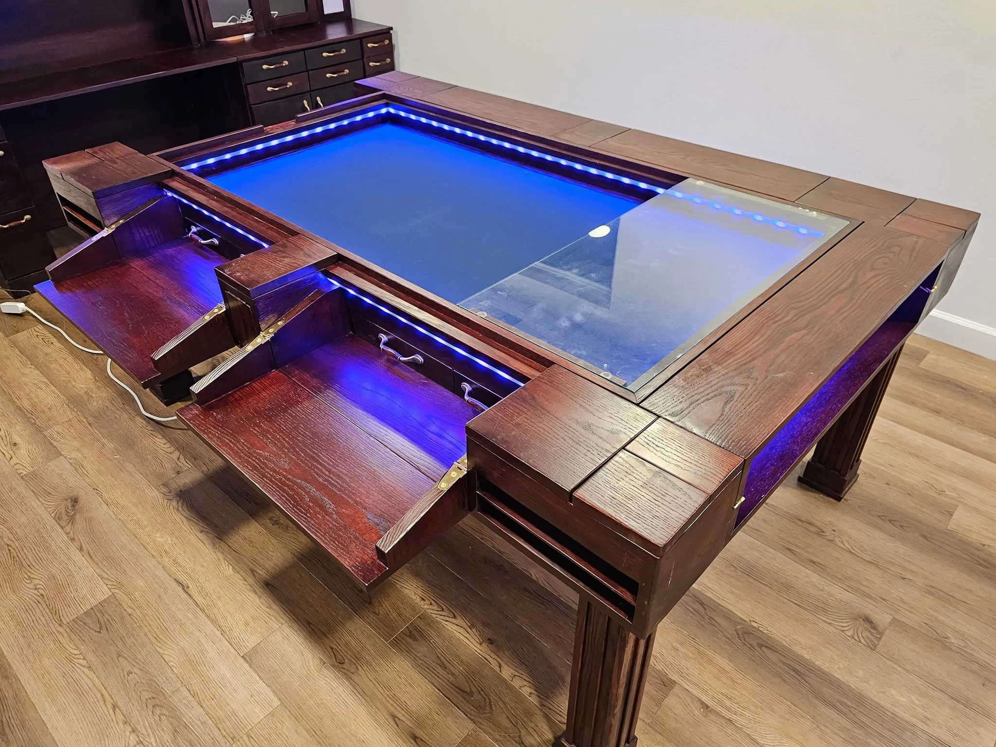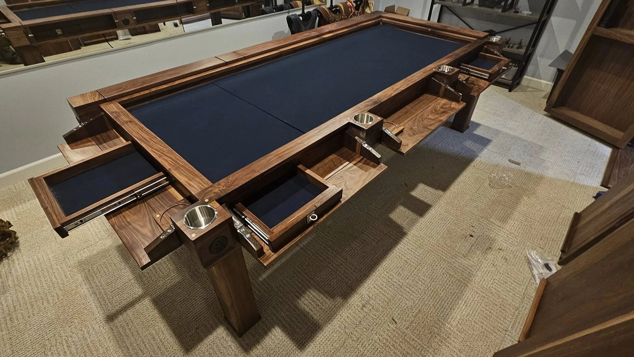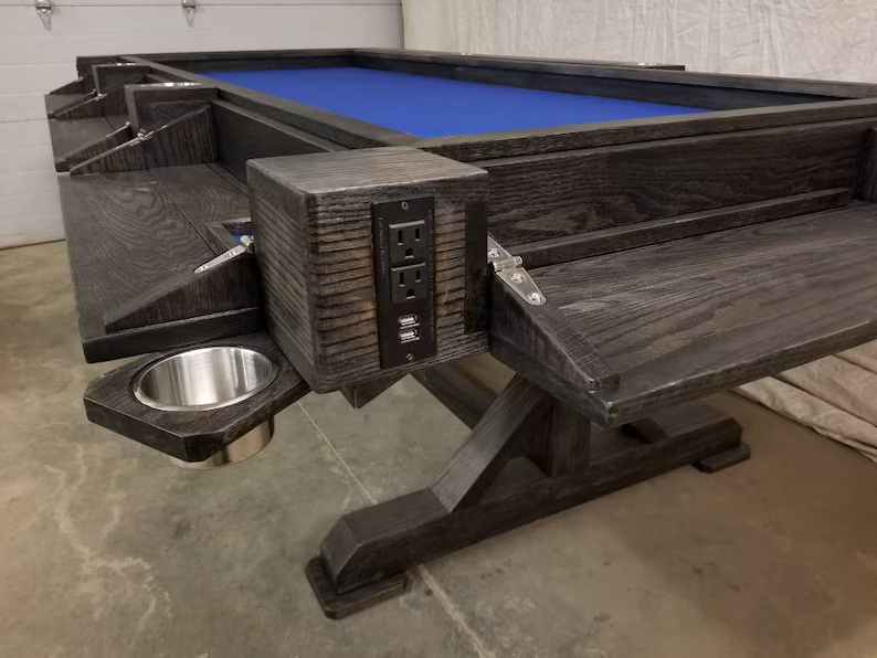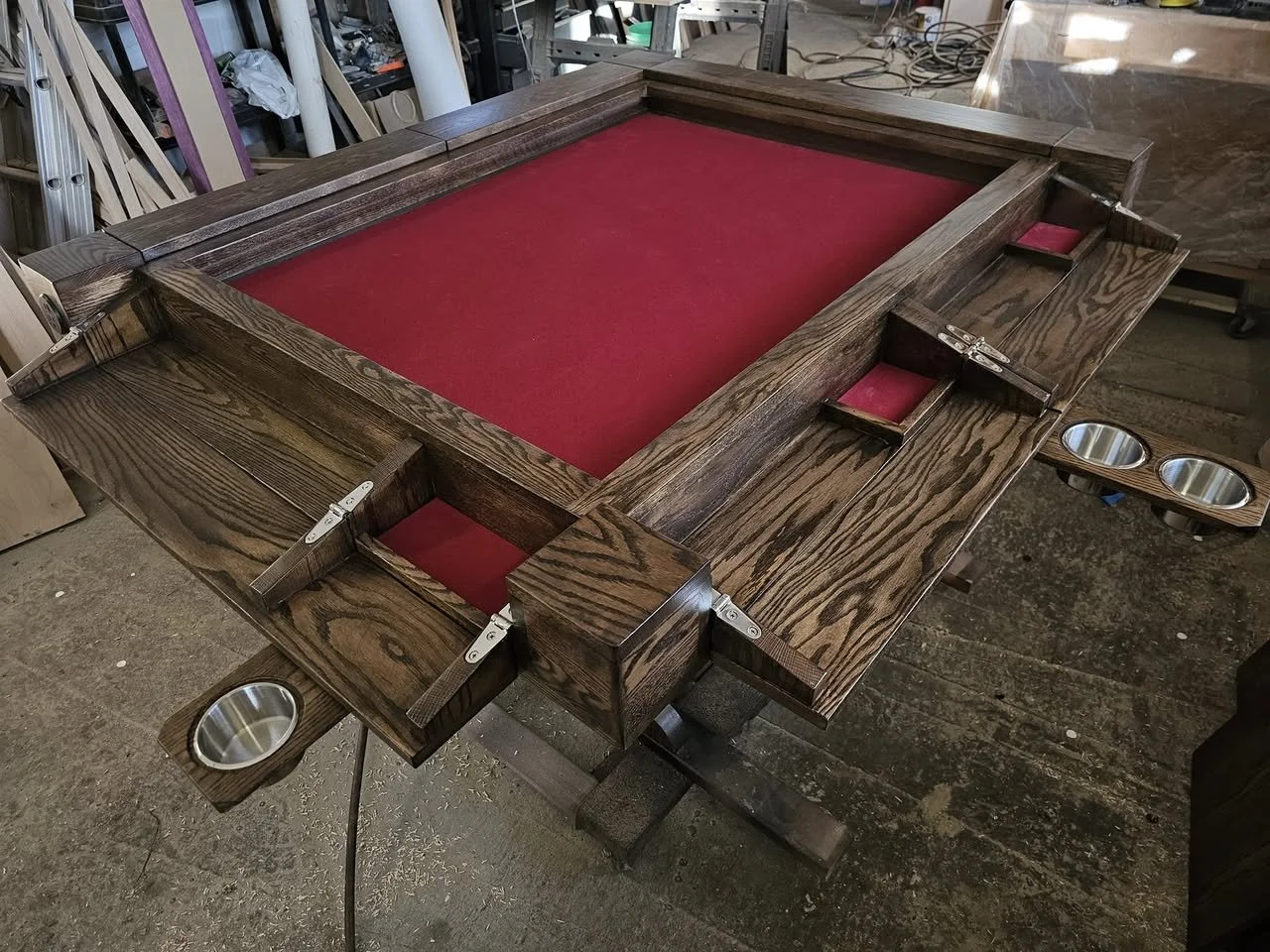 We can also integrate cup holders to keep drinks safe, card holders for hands-free play, and hidden storage compartments for a neat, organized table. Whether you want to keep everything at your fingertips or add a unique touch to your setup, we’ll help you design the perfect accessories to suit your needs.
