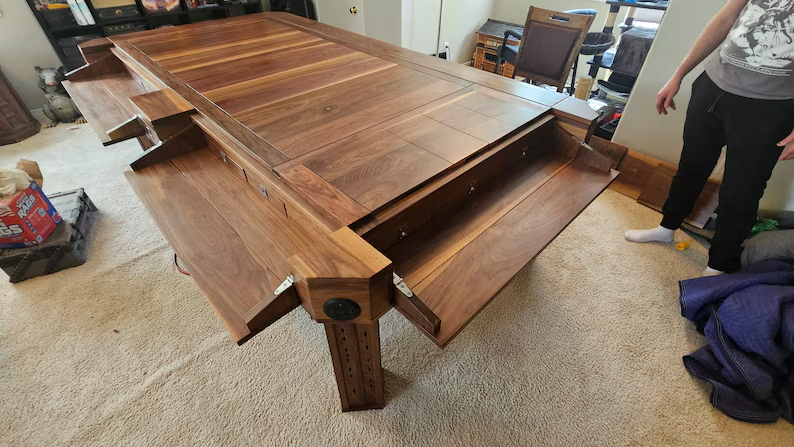 And for added convenience, motorized lifts can be incorporated to raise or lower game surfaces, giving you a flexible workspace that adapts to your needs. Whatever technology you envision, let’s talk about how you could integrate it seamlessly into your custom design.